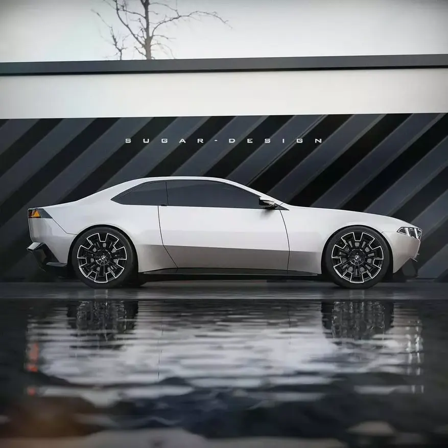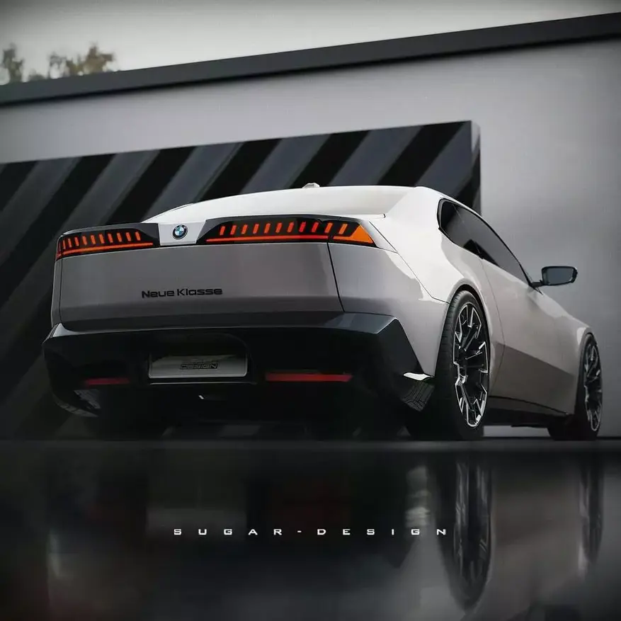 Студия Sugar Design подготовила визуализации возможного облика будущего автомобиля. Рендеры демонстрируют характерные элементы дизайна концептов BMW Neue Klasse: удлиненный капот, узкие фары головного света, тонкие решетки радиатора и горизонтальные светодиодные задние фонари.