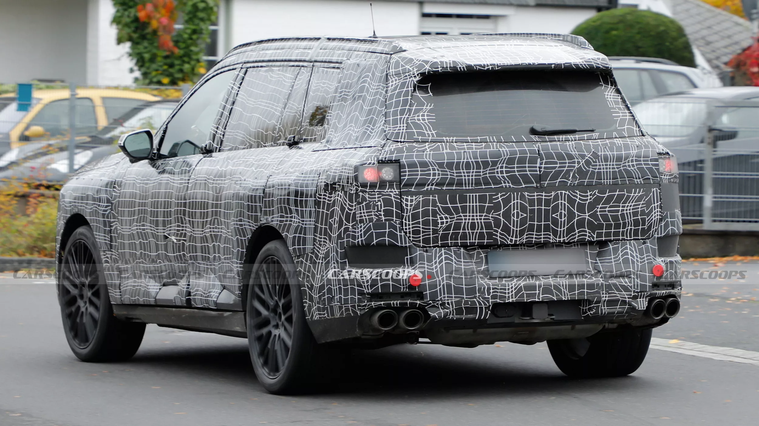 Задняя часть остаётся под плотной маскировкой и оснащена временными фонарями. По мнению аналитиков, серийная версия почти наверняка получит сквозные светодиодные фонари, перекликаясь с дизайном будущих X5 и iX5.