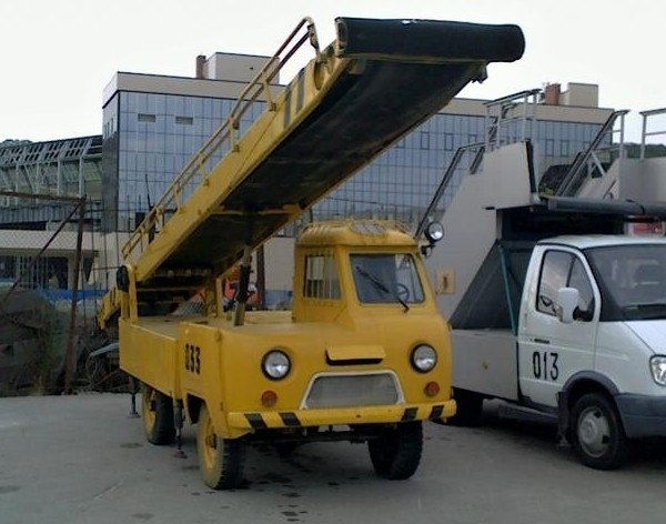 Оказалось, что перед нами не плод чьего-то безумного тюнинга или кустарной переделки, а вполне серийный, хоть и малоизвестный, автомобиль особого назначения — аэродромный транспортер АТ-6. Созданный (1975 г.) на базе легендарного УАЗ-452, более известного как «Буханка» за свою характерную форму, АТ-6 разительно отличался от своего многофункционального прародителя. АТ-6 был заточен под выполнение одной, но очень важной функции — обеспечения погрузочно-разгрузочных работ в советских аэропортах.