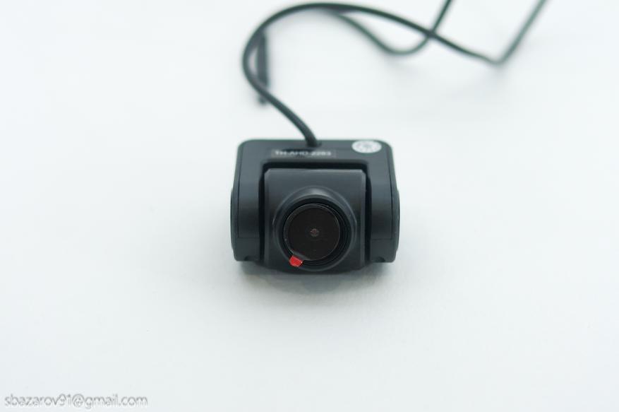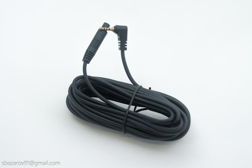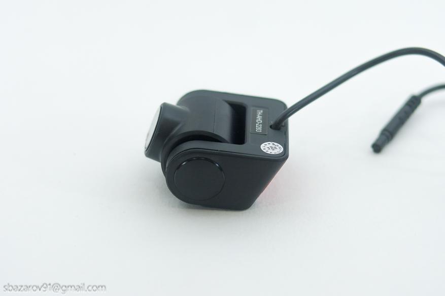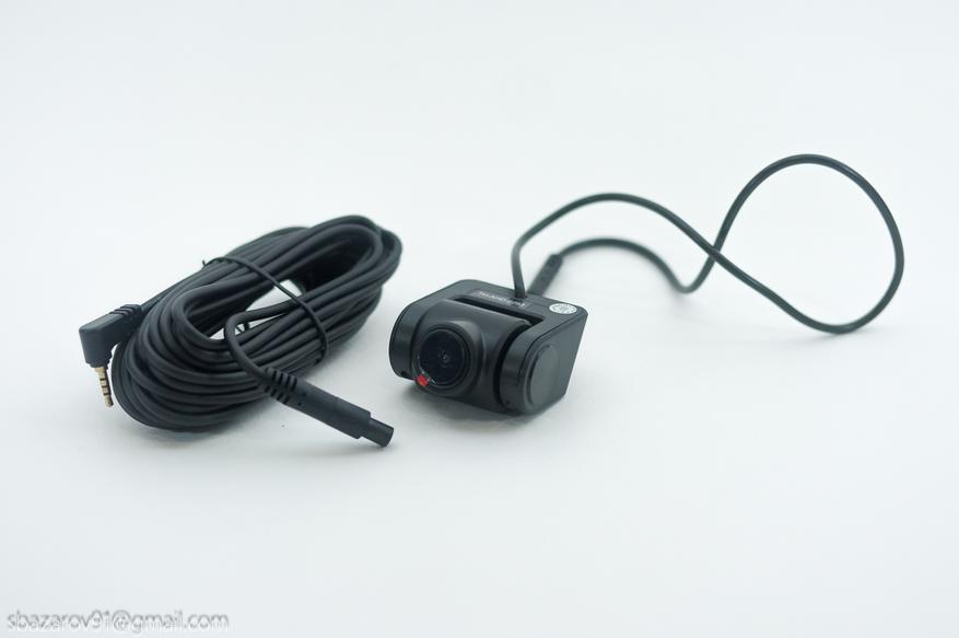 Данная камера предназначена для салона автомобиля и крепится к заднему ветровому стеклу также через 3М скотч. Для прокладки кабеля от видеорегистратор к задней камере предусмотрен 5-метровый провод, которого будет достаточно для аккуратной прокладке через боковую стойку/крышу или боковую стойку/порог автомобиля. Разъем для подключения удлинителя — миниджек на 2,5мм.