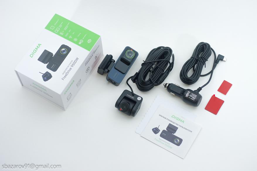 Помимо двух камер с удлинительным проводом, в комплекте имеется зарядное устройство в прикуриватель с Type-C разъемом, руководство по эксплуатации и пара запасных 3М-стикеров.