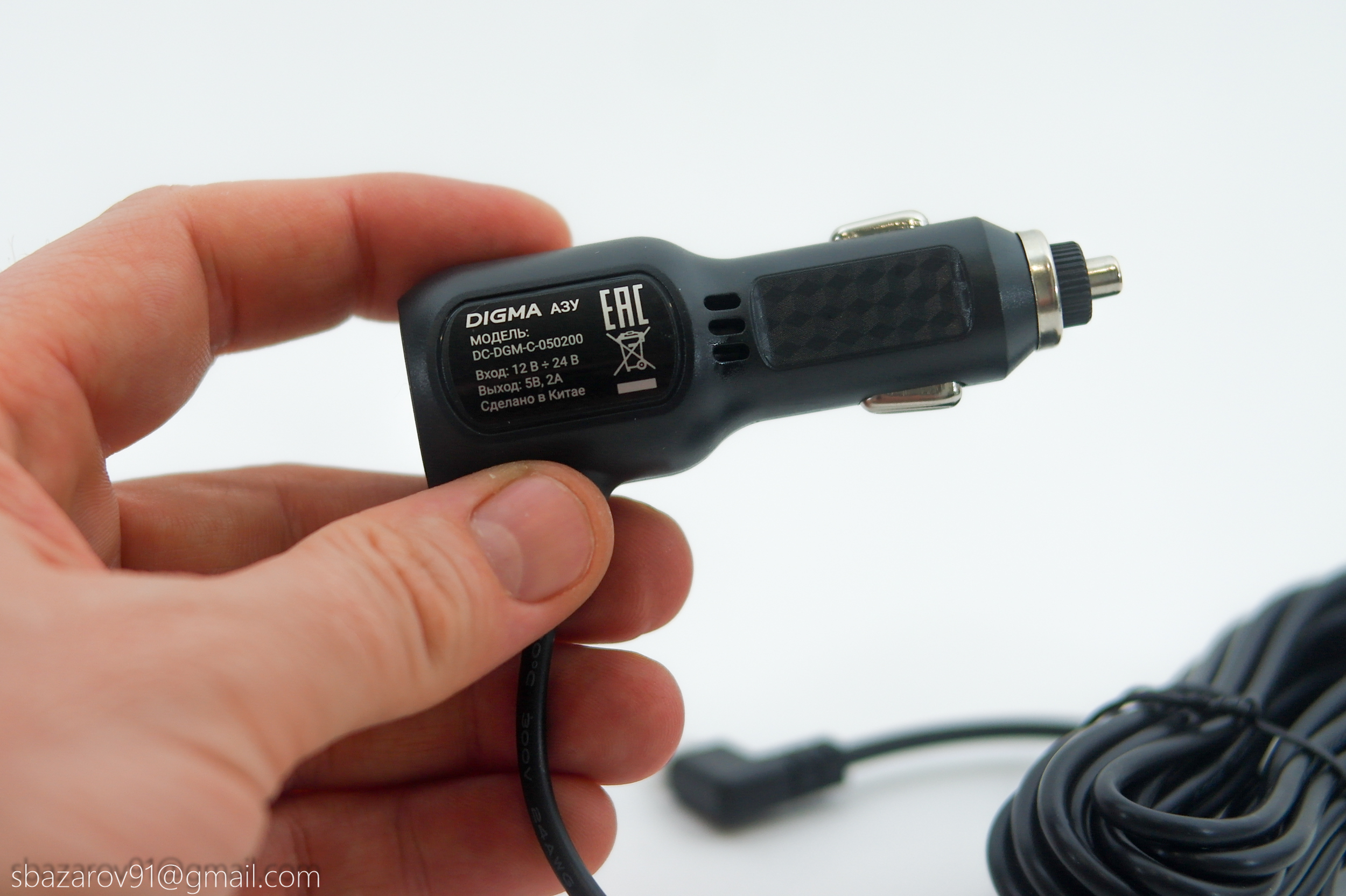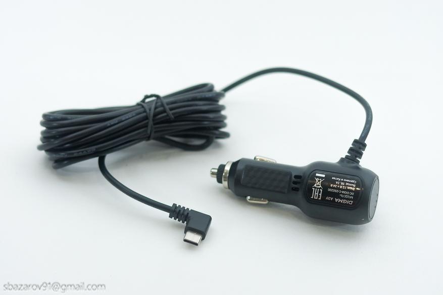 Базово, видеорегистратор DIGMA FreeDrive 950DW комплектуется адаптером питания, устанавливающийся в прикуриватель. Напряжение сети — от 12 до 24 Вольт, что в теории позволяет использовать его даже в грузовиках. Однако розетка прикуривателя даже в старом Камазе на 12 Вольт. На этом фоне наиболее интересным является выходные параметры — 5 Вольт и 2 Ампера и Type-C разъем на корпусе. Это дает возможность использование сторонних способов питания видеорегистратора, как например, монтаж USB-розетки в кожух камеры заднего вида. Если же вы предпочитаете использовать то, что дает производитель, то для DIGMA FreeDrive 950DW достаточно одного прикуривателя. Длина питающего провода — 140 см.
