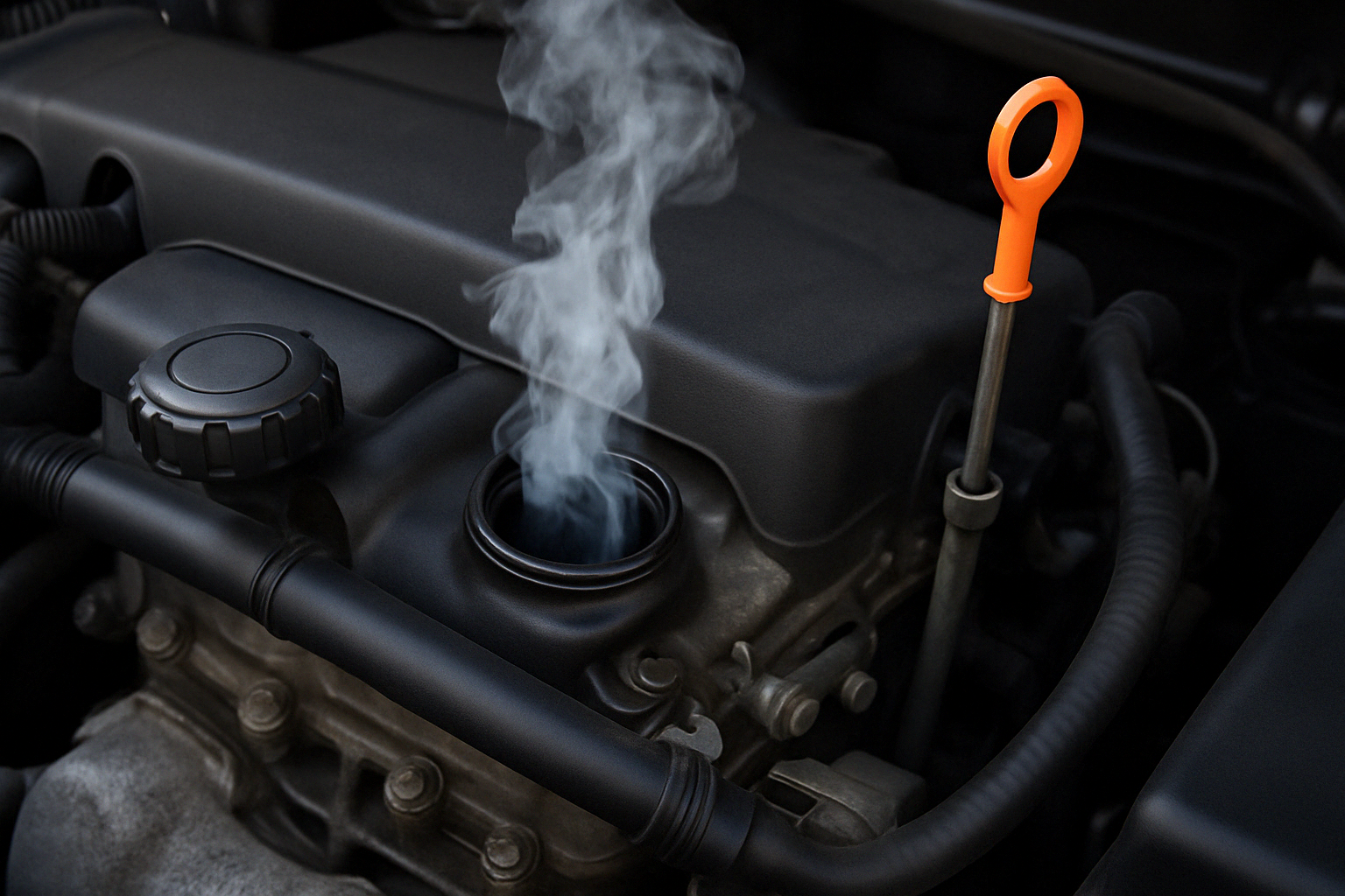 Дым, выходящий из щупа для проверки уровня масла или из маслозаливной горловины — это не просто пар. Это тревожный симптом, который может указывать как на мелкие неполадки, так и на серьезные проблемы с двигателем. Многие водители списывают это на «старость машины» или «нормальное явление», хотя в реальности дым — это способ двигателя сказать: «У меня есть проблема, обрати внимание».