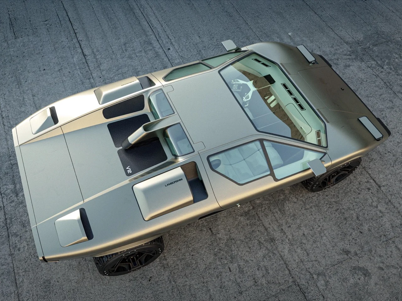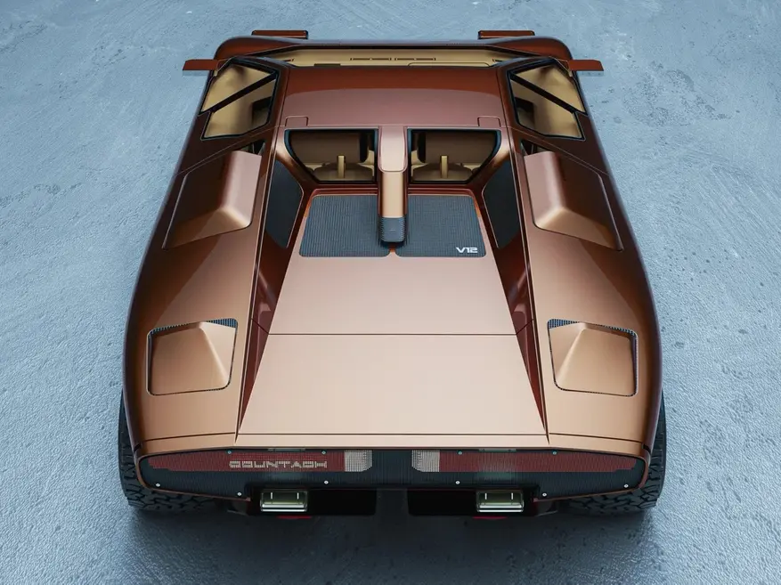 Проект основан на дизайне оригинального Countach, созданного Марчелло Гандини. Художник сохранил ключевые элементы итальянского суперкара 1970-х годов: характерную продольную линию кузова, угловатые панели, геометрию оконных проёмов и фирменные двери-ножницы.