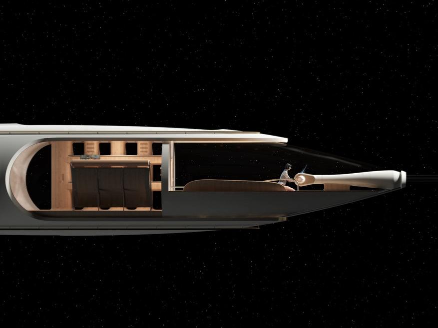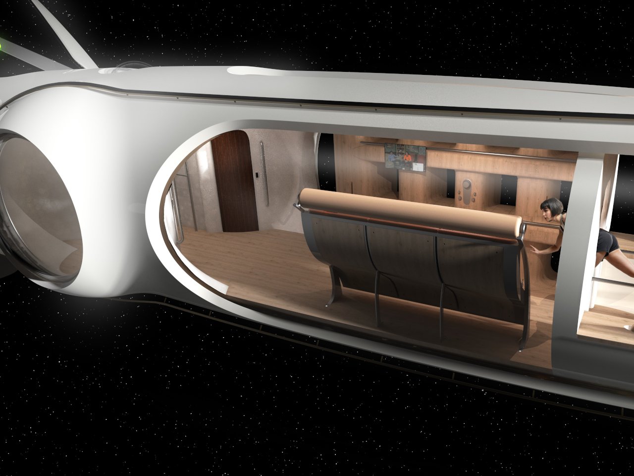 Внутреннее пространство корабля разделено на функциональные зоны. Кабина пилота выполнена в стиле японского дзен-буддизма с медитативными сиденьями сэйдза и минималистичными элементами управления. Кают-компания, вдохновленная скандинавской спа-культурой, включает кровать, кухню, душ и обеденный стол.