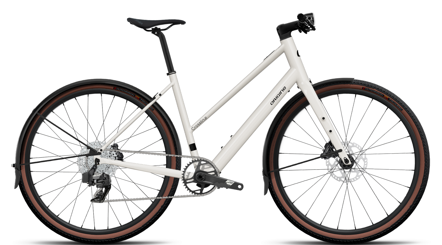 Crossline Open от компании Origine Cycles — это легкий электрический гибридный велосипед с открытой (ступенчатой) рамой для удобства посадки, оснащенный бесшумным двигателем Mahle X30 (250 Вт, 45 Н*м), предназначенный для комфортных ежедневных поездок. Модель сочетает в себе производительность и практичность. Конструкция обеспечивает вертикальное положение при езде.