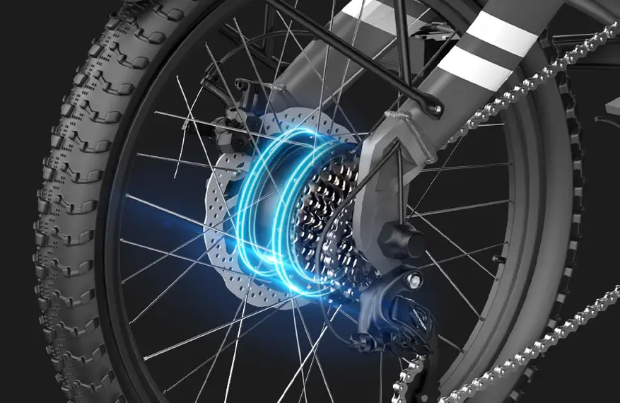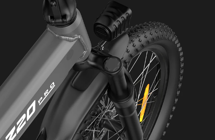 Для снижения тряски на неровных дорогах производитель использует амортизационную вилку. Механические дисковые тормоза служат для замедления и остановки. Освещение представлено передней фарой и фонарем с функцией стоп- сигнала. Колеса имеют размер 20*2, 125 дюйма.