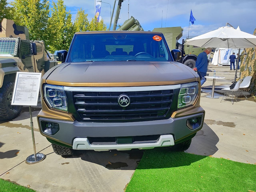Размеры модели несколько больше Патриота от УАЗ — 4950х2250х2150 (ширина) мм. На крыше пару люков, в салоне два ряда сидений. Полный привод внедорожника реализован по схеме «Part-time» (подключаемый передний), есть блокировка дифференциала заднего моста и пониженная передача в раздаточной коробке. Подвеска у передних колес независимая пружинная, задний мост подвешен на рессорах. Дорожный просвет 27 см.