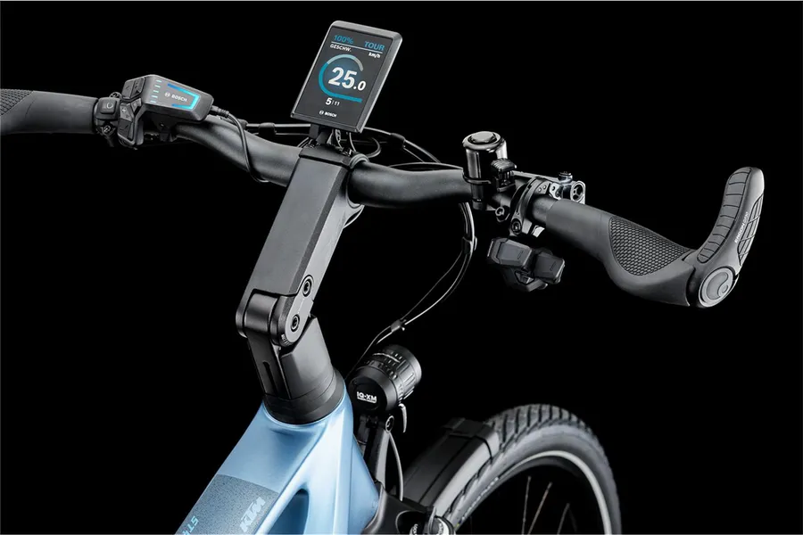 Транспорт оснащен амортизационной вилкой Suntour NCX32-E Air L0 с ходом подвески 63 миллиметра. Для смягчения вибраций также предназначен подседельный амортизационный штырь Suntour SP17-NCX suspension 30.9/350. Установлен дисплей Kiox 500 и светодиодный пульт дистанционного управления, на котором, в том числе, отображаются навигационные данные.