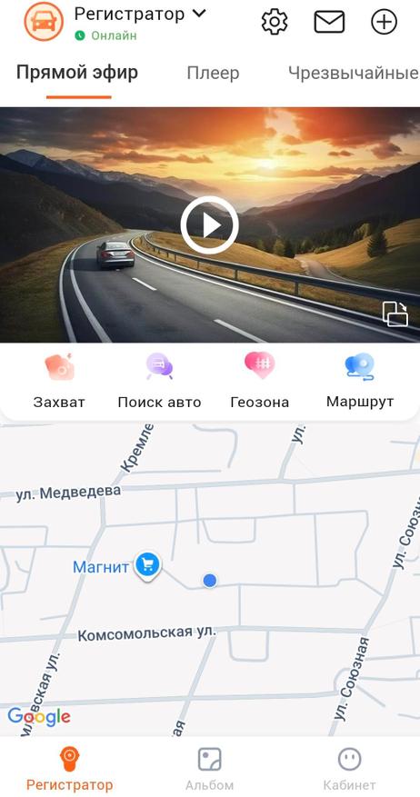 Первое — это доступ к видео с камер видеорегистратора со смартфона (задержка около 2 сек.):