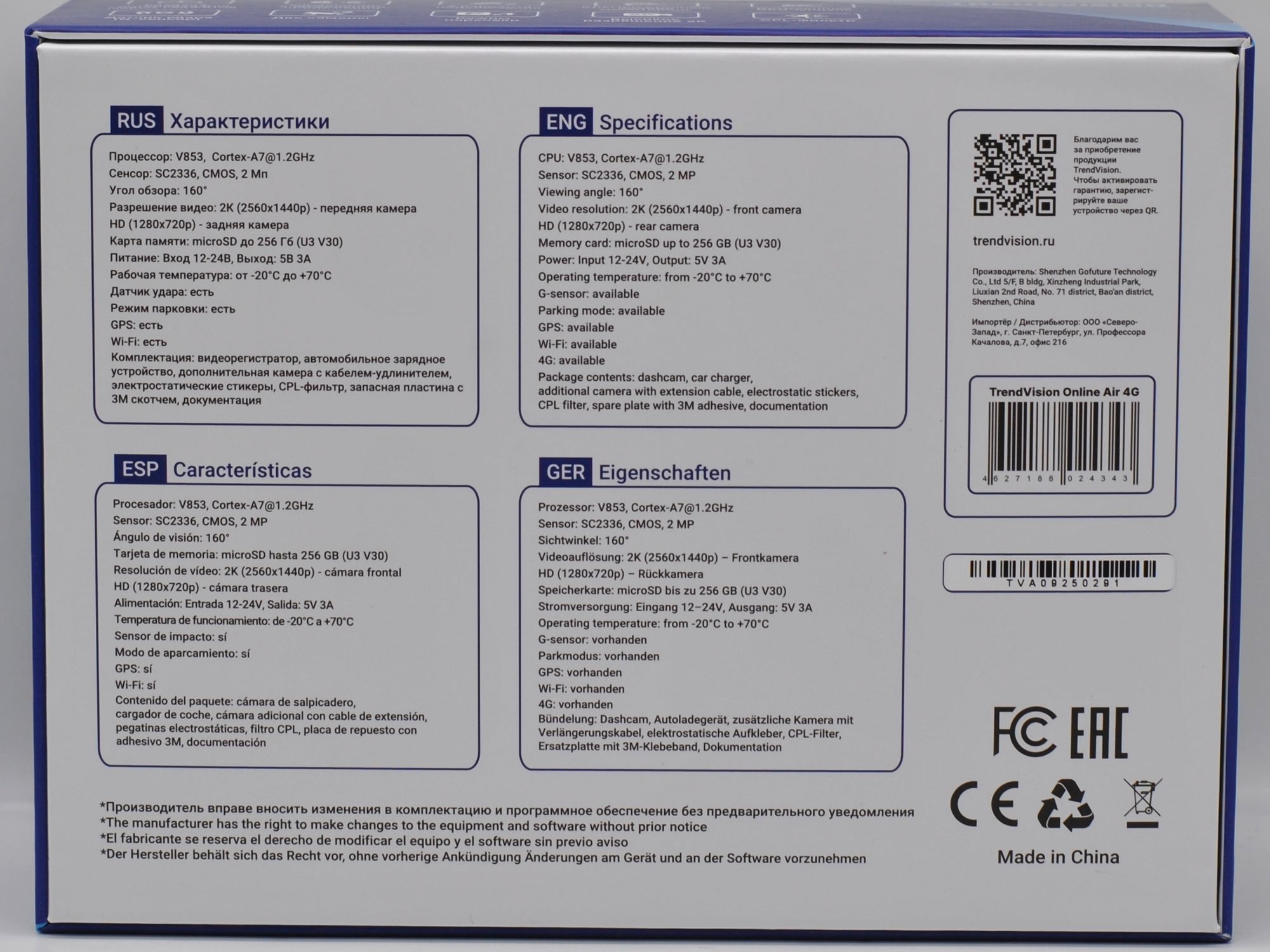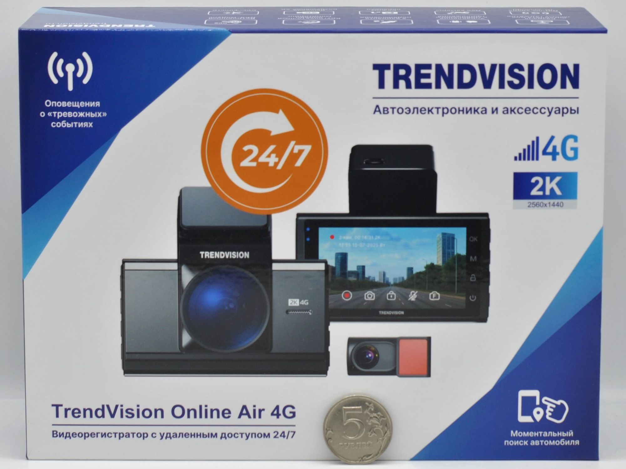 Автомобильный видеорегистратор TrendVision Online Air 4G современный вариант регистратора с полноценной системой удалённого мониторинга автомобиля. Сочетание двух камер, встроенного 4G с симкой, спутникового модуля и умного ПО превращает устройство в «стража», который работает 24/7 — даже когда вы далеко от машины. Есть мгновенные уведомления на смартфон при ударе или запуске двигателя. Вопрос питания сразу продуман — HardWare Kit питает регистратор напрямую от аккумулятора. Есть дополнительные возможности в виде: раздача Wi‑Fi, голосовая связь, GPS‑трекинг, и голосовых оповещений. Дополнительный мониторинг будет полезен не только для коммерческого транспорта, но и для автовладельцев, которые ценят безопасность и хотят контролировать машину вне зависимости от расстояния.