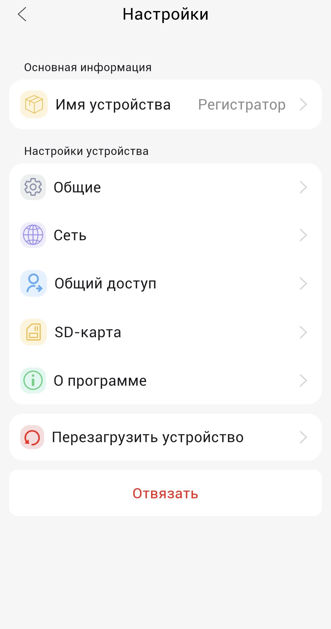 Настройки устройства (русский язык по умолчанию):