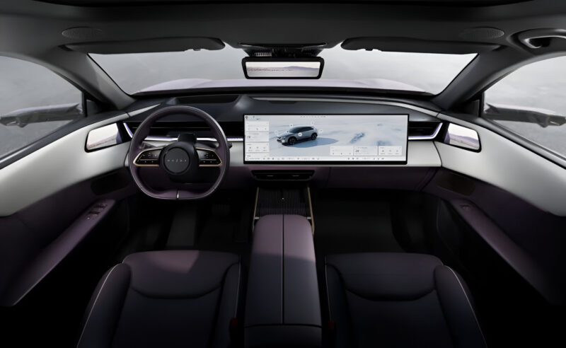 Техническое оснащение включает 4-нм чип автомобильного уровня, обеспечивающий на 25-40% большую вычислительную мощность по сравнению с предыдущими 7-нм чипами при том же энергопотреблении. Внутри установлен 100-дюймовый проекционный 3D-дисплей с функцией отслеживания движения глаз, 26,45-дюймовый панорамный экран с разрешением 5K, электронные наружные зеркала и цифровое зеркало заднего вида.