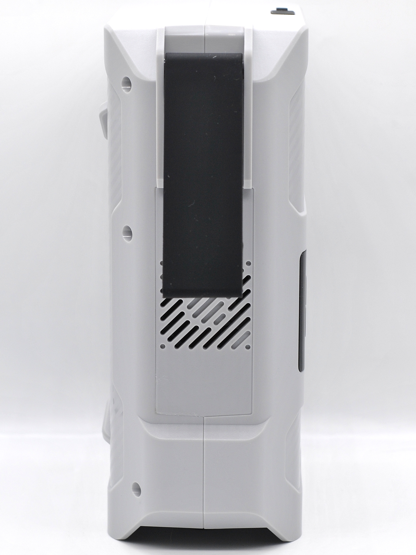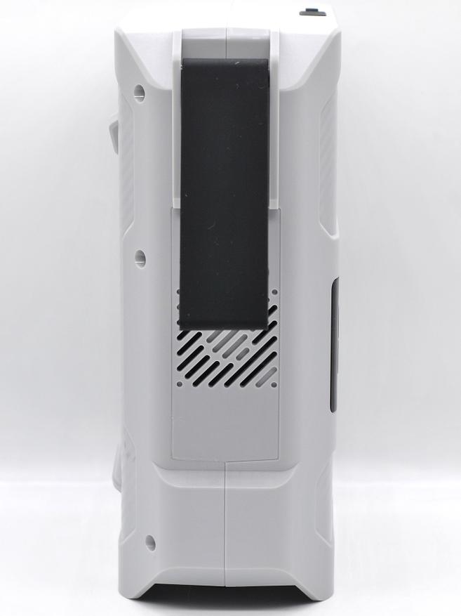 Насос D17 Pro выполнен из матового серого пластика, для переноски есть широкая резиновая петля. Сборка монолитная, ничего не болтается внутри. Но пластик вокруг дисплея склонен быстро царапаться. Патрубки для накачивания и сдувания утоплены в нишу корпуса. Порт для зарядки / режима повербанка с резиновой заглушкой.