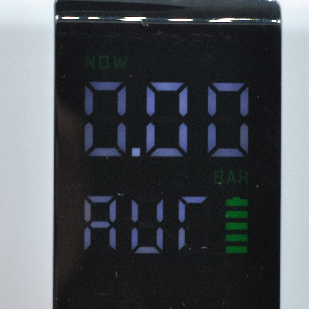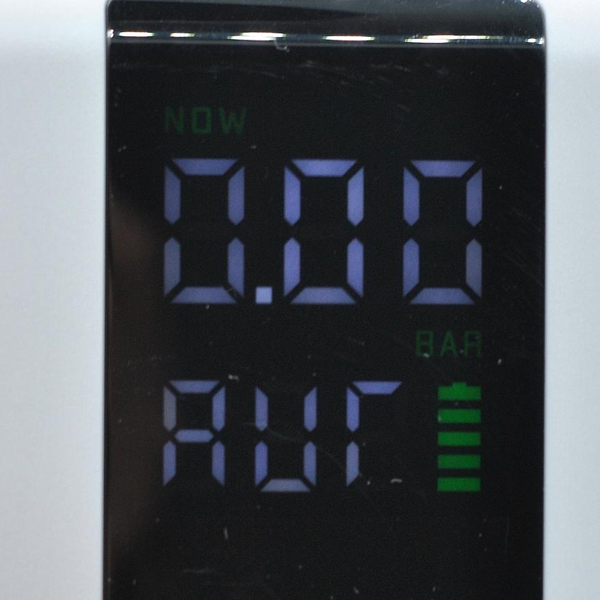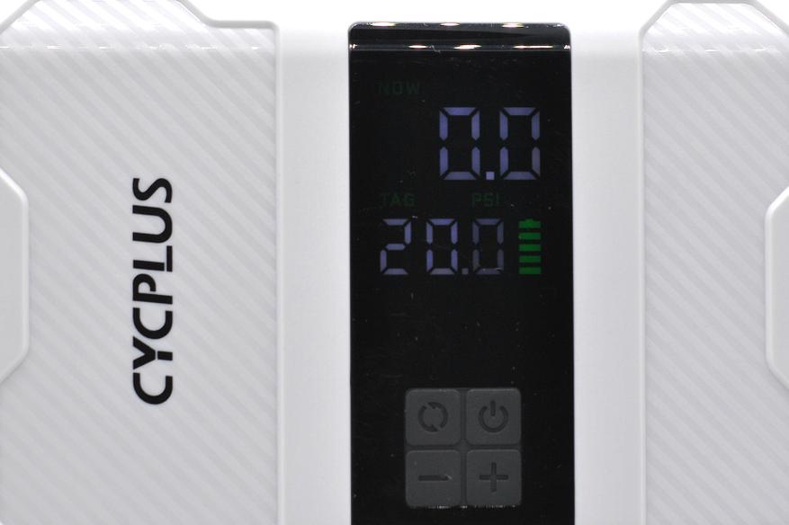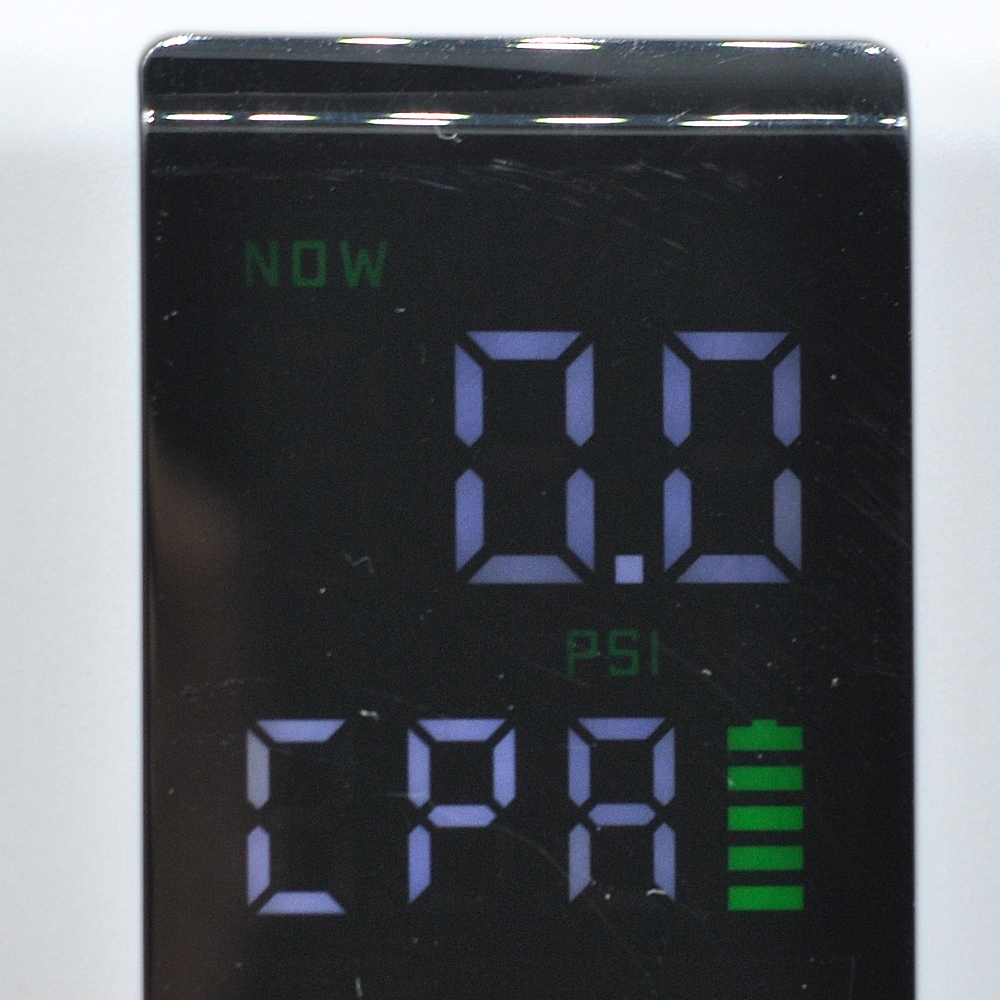Управление четырьмя прорезиненными кнопками. Дисплей наглядный — высота цифр 17 и 13 мм. Верхние цифры текущее давление в объеме, нижние уставка, до которой будет идти накачивание. Давление отображается в двух единицах. Есть калибровка манометра в 0.