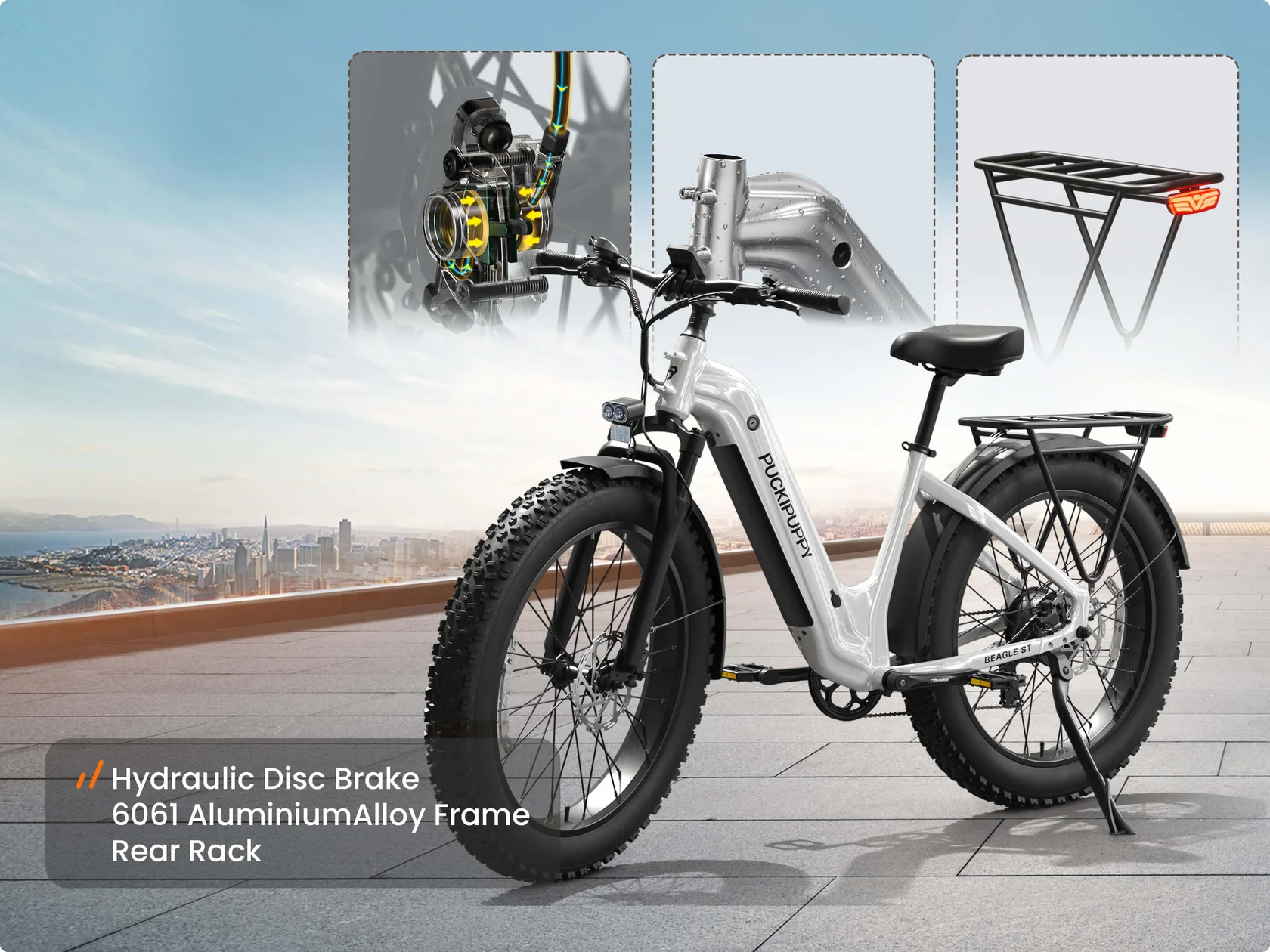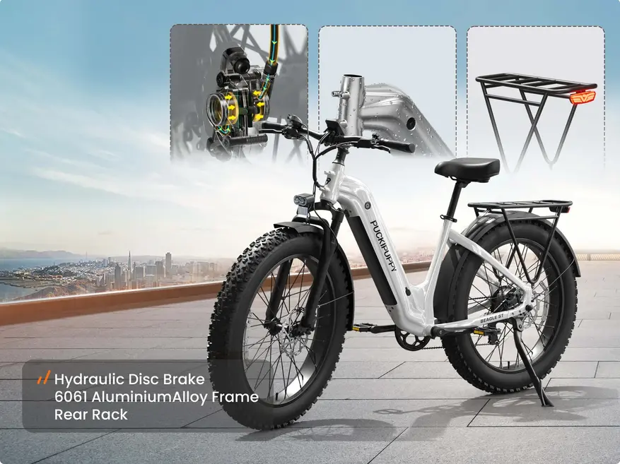 Puckipuppy является брендом электровелосипедов, основанным в Калифорнии. Рама модели выполнена из алюминиевого сплава 6061 и отличается повышенной устойчивостью к коррозии и скрытой проводкой кабелей.