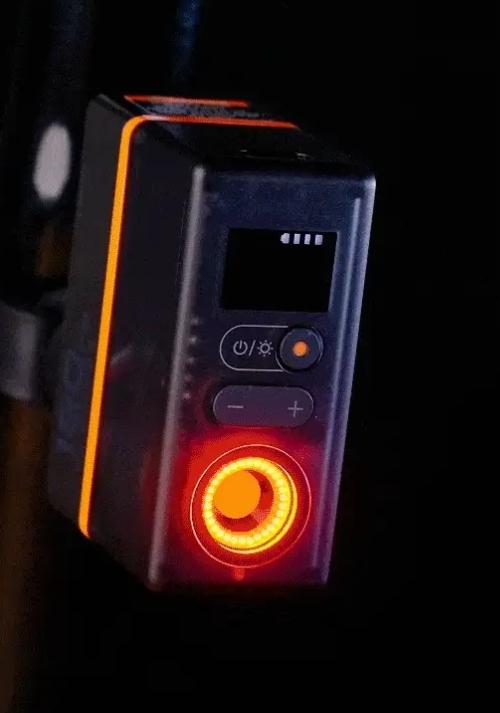 Для повышения безопасности при езде в темное время суток на насосе имеется задний фонарь с тремя режимами: постоянный свет (400 люмен), мигающий и SOS. Корпус устройства выполнен из ABS-пластика с водозащитой IP44. В комплект входит инструкция, кабель Type-C, зарядное устройство и набор из пяти различных наконечников.