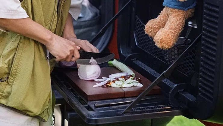 Задний бампер получил функциональный откидной модуль, который Ford называет «горной кухней». Он включает раскладной стол, магнитную полосу для столовых приборов, держатель для напитков и встроенный открывалку для бутылок. Производитель позиционирует Basecamp как первый в истории бренда «внедорожный кемпинговый SUV».