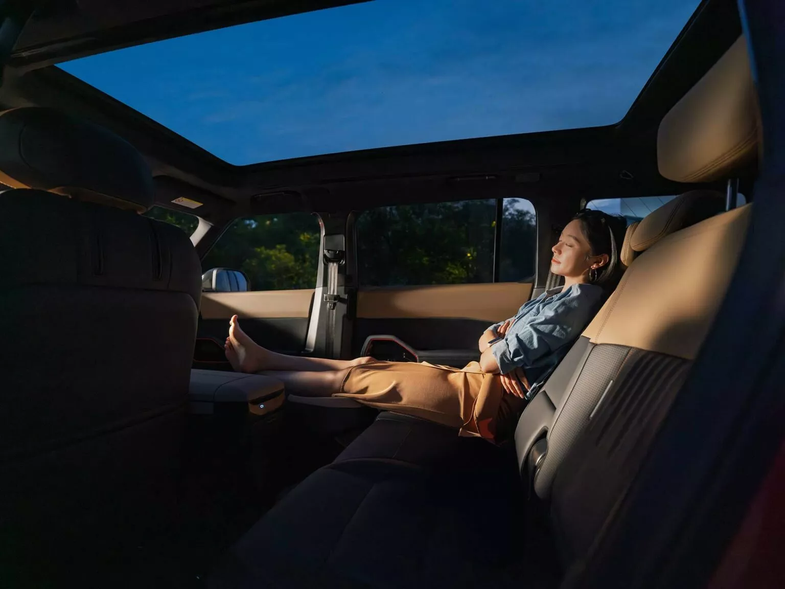 Одной из ключевых особенностей новинки стала интегрированная система подъёма панорамной стеклянной крыши. При активации она поднимается на 360 мм (14,2 дюйма), создавая дополнительное пространство над задними сиденьями. В сочетании со складывающимися передними креслами и автоматически опускающимися подголовниками это превращает салон в полноценное спальное место. Для удобства предусмотрена надувная двуспальная кровать с фирменным логотипом Bronco.