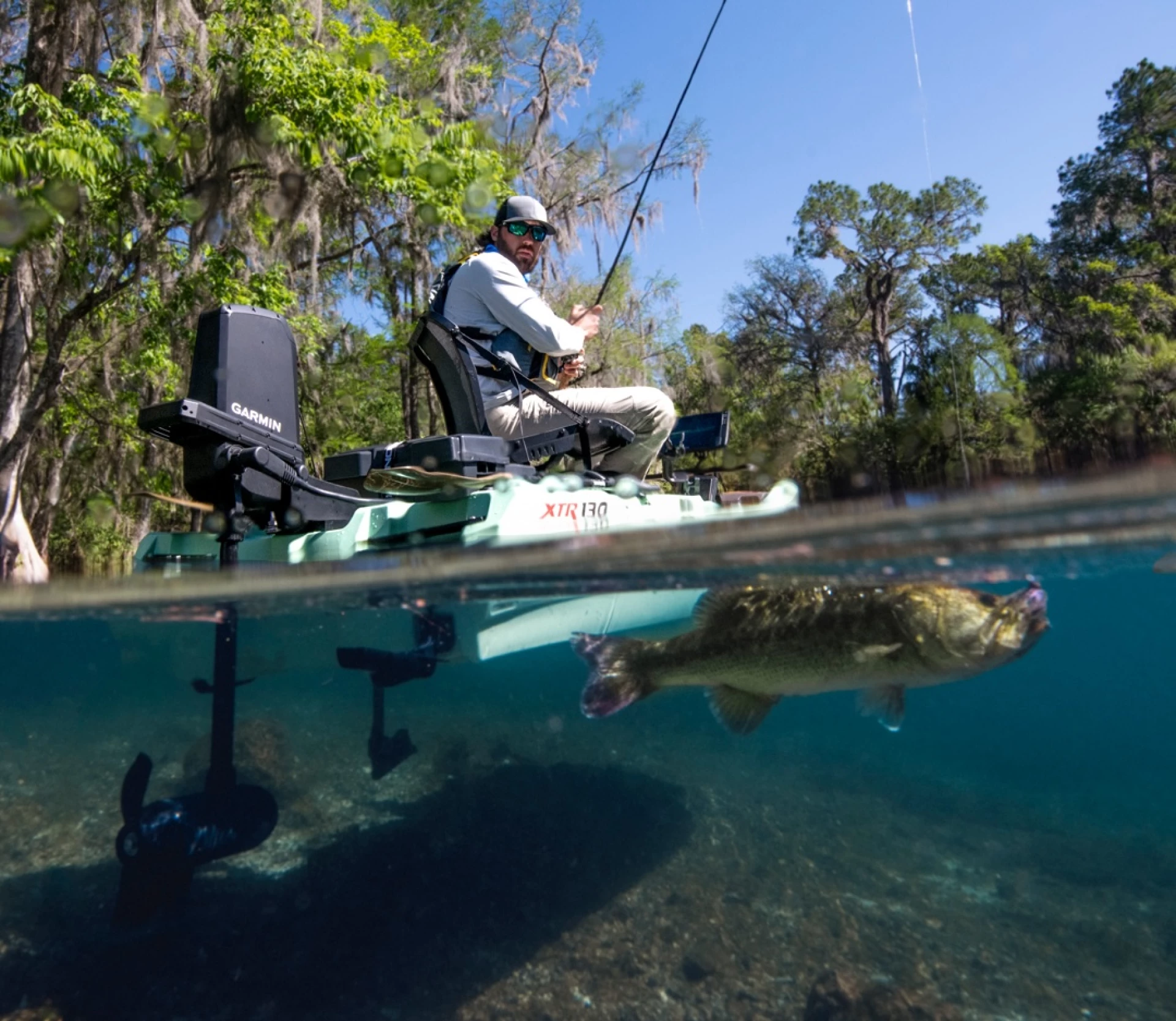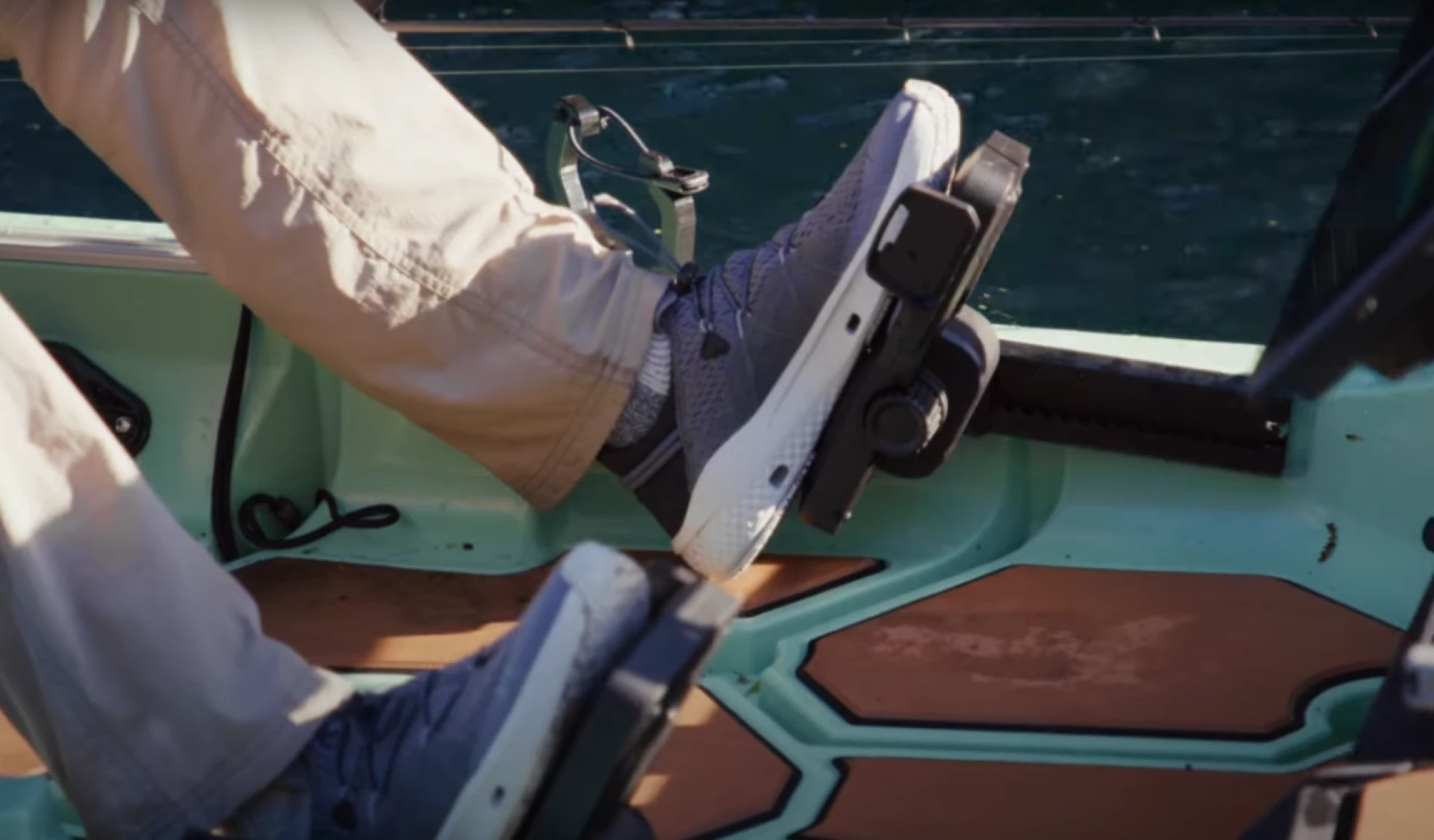 На внутренних краях педалей расположены дополнительные переключатели, активируемые ногой. Они позволяют управлять функциями совместимого картплоттера Garmin, выбирать предварительно запрограммированные путевые точки и активировать функцию «фиксация на якоре», которая использует многодиапазонный GPS для поддержания точного позиционирования даже при сильном ветре или течении.