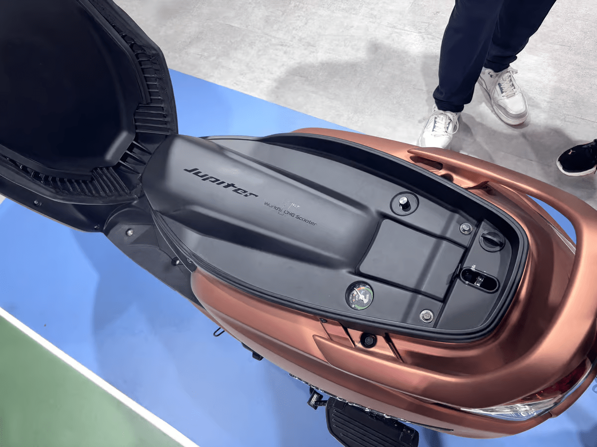 Между режимами работы на бензине и СПГ можно переключаться с помощью кнопки, расположенной на распределительной коробке, что обеспечивает гибкость при различных сценариях езды. Jupiter CNG оснащен 124,8-кубовым одноцилиндровым двухтопливным двигателем с воздушным охлаждением, который выдает 7,2 лошадиных силы и максимальный крутящий момент в 7 фунт-фут (9,4 Нм). Хотя эти показатели немного ниже, чем у бензиновой версии, которая выдает 8,1 л.с. и 7,7 фунт-фут (10,5 Нм) крутящего момента, скутер по-прежнему обеспечивает комфортную езду с максимальной скоростью 50 миль в час (80,5 км/ч).