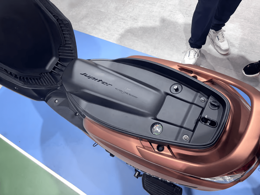 Jupiter CNG был представлен на выставке Bharat Mobility Expo, которая прошла недавно в Индии. Jupiter CNG использует инновационный подход, используя двухтопливную установку, сочетающую 2-литровый бензобак с баллоном для сжиженного природного газа весом 1,4 кг. Эта конфигурация обеспечивает суммарный запас хода в 140 миль (226 км), при этом только на сжиженном природном газе пробег составляет 52 мили (84 км) на килограмм. Для установки баллона для сжиженного природного требуется 33-литровое пространство для хранения под сиденьем скутера.