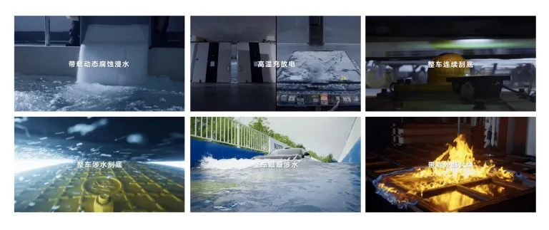 В ходе испытаний один и тот же аккумуляторный блок, находившийся в активном состоянии разряда, подвергался различным экстремальным воздействиям: динамическому погружению в коррозионную среду, высокотемпературному заряду и разряду, многократному скребанию днища, погружению в воду с соскабливанием, преодолению неровных водных преград и внешнему воздействию огня. Автомобиль Lynk & Co 10 EM-P, оснащенный этим аккумулятором, после всех испытаний сохранил нормальное рабочее состояние.