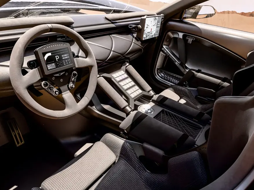 Салон получил ковшеобразные сиденья и приборную панель с отделкой из кожи и микрозамши. Автомобиль оборудован системой климат-контроля и выдвижным информационно-развлекательным экраном, который можно перемещать для удобства водителя и пассажира.