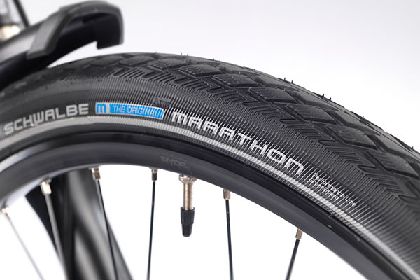 Покрышки Continental Double Fighter III, обутые на диски Oxygen RM-26 Disc, дают сцепление на любой местности. Передняя фара Relock Light Hammer 80 и задняя фара B+M Shine Evo предназначены для того, чтобы транспортное средство было на виду. В