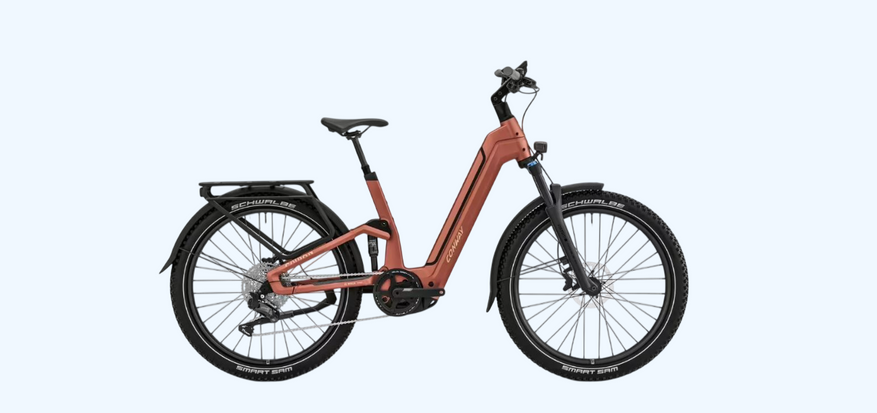 11-ступенчатый переключатель передач Shimano является необходимым в условиях гористого ландшафта. Багажник может похвастаться системой крепления по стандарту MIK HD. Освещение представлено спереди фарой HERRMANS «MR9», сзади — светильником AXA «Juno E-Bike», Brake.