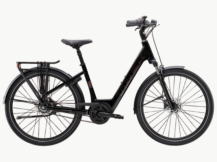 Конструкция имеет пластиковые брызговики, эргономичные ручки и удобное седло Bontrager Boulevard. Для удобства парковки имеется подножка Pletscher Comp Flex 18.