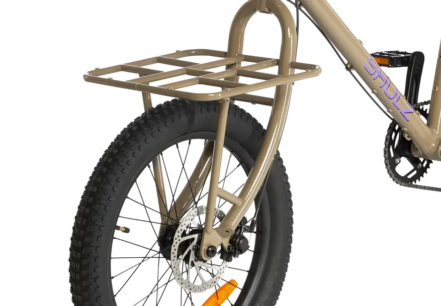 The Tentacle обладает непривычной связкой 20″ колеса спереди и 24″ сзади. Это сделано для того, чтобы груз не влиял на управляемость велосипеда.