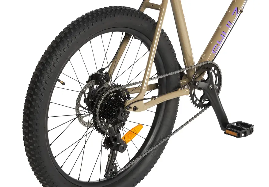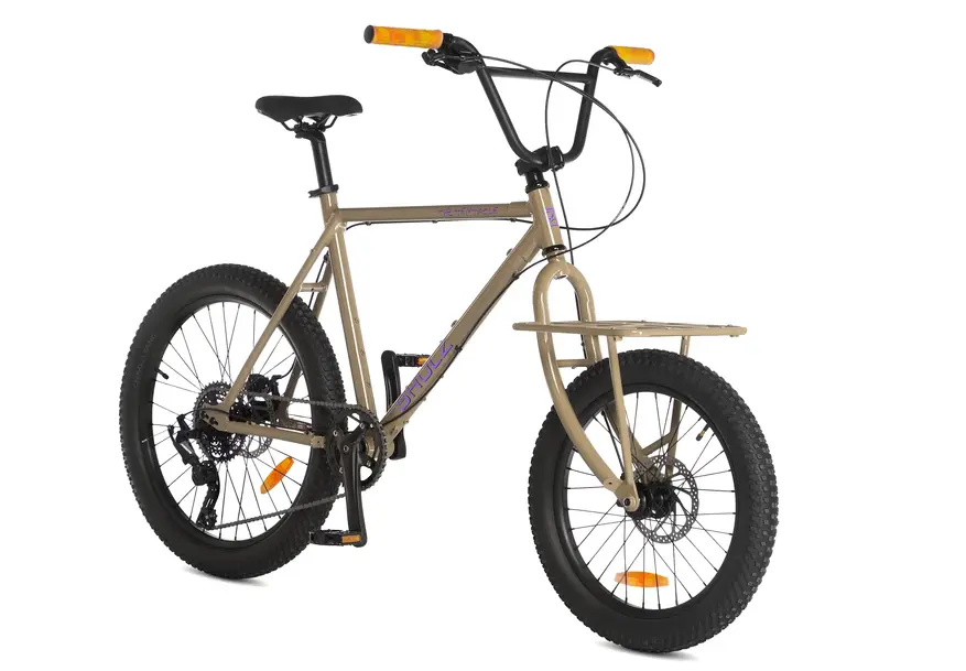 Ширина покрышек составляет три дюйма, таким образом новинка представляет собой полуфэтбайк. Однако когда речь о велосипедах с 20 или 24″ колесами, при ширине 3″ их обычно называют именно фэтбайками. Производитель позиционирует свое детище как «горный велосипед с грузовой вилкой», поэтому понятно, что модель создавалась с прицелом прежде всего на применение в местах отсутствия ровного тротуара и идеальных дорог.