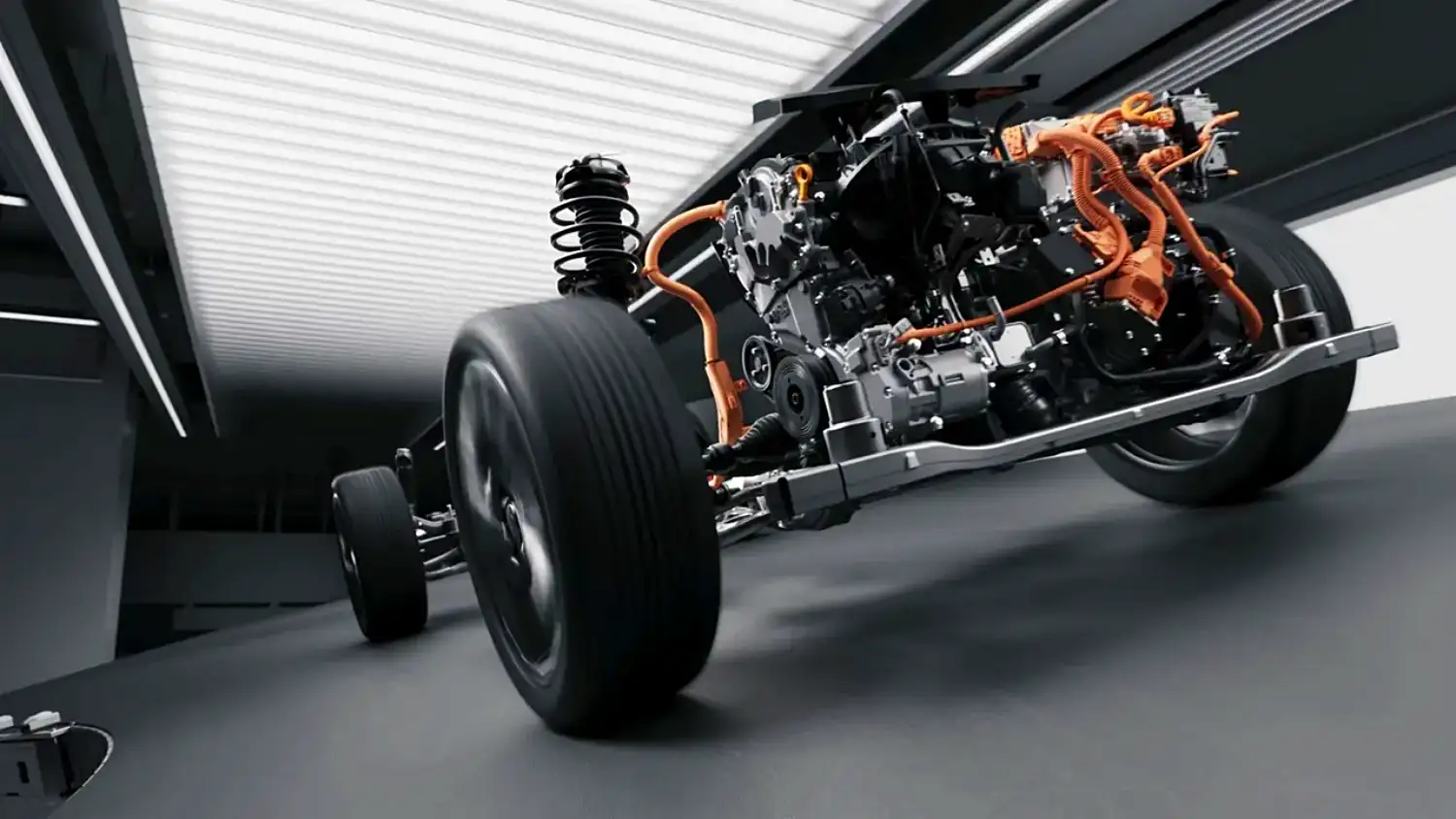 В состав системы входит трансмиссия, интегрирующая два электромотора. Первый электромотор отвечает за начальное движение, выработку энергии и поддержку тяги, второй — за прямое движение и рекуперативное торможение.