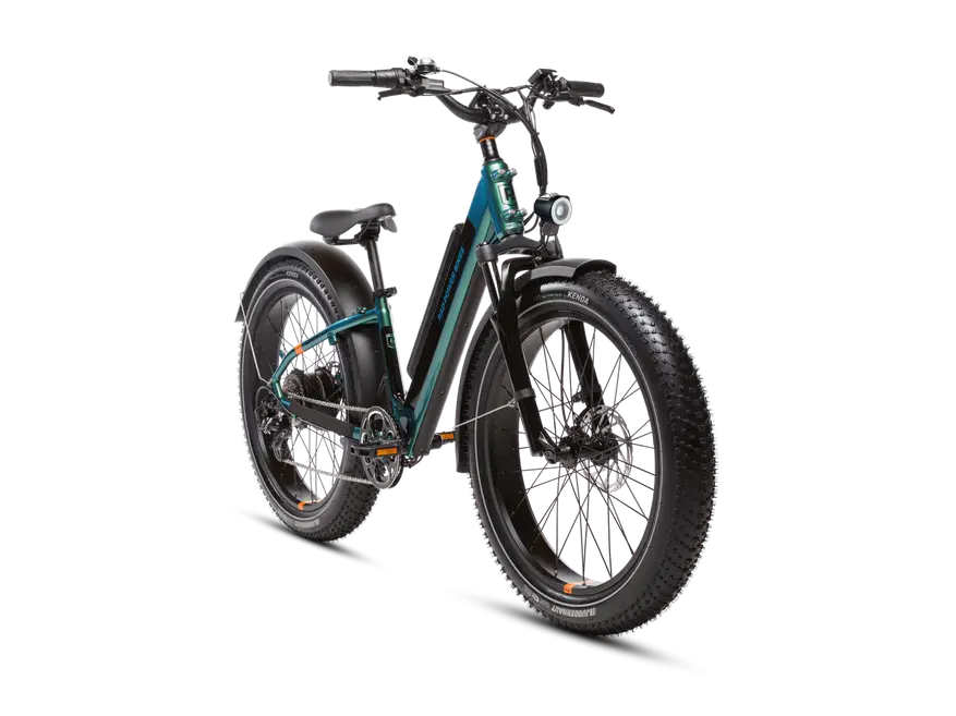 Широкие шины Kenda Juggernaut 26 x 4дюйма обеспечивают устойчивость, сцепление с дорогой и плавность хода на пересеченной местности, такой как гравий, песок и снег. Руль 700 мм с выносом 50 мм и углом 30 градусов, эргономичные захваты и регулируемая вилка RST (ход подвески) 60 мм обеспечивают комфорт при движении