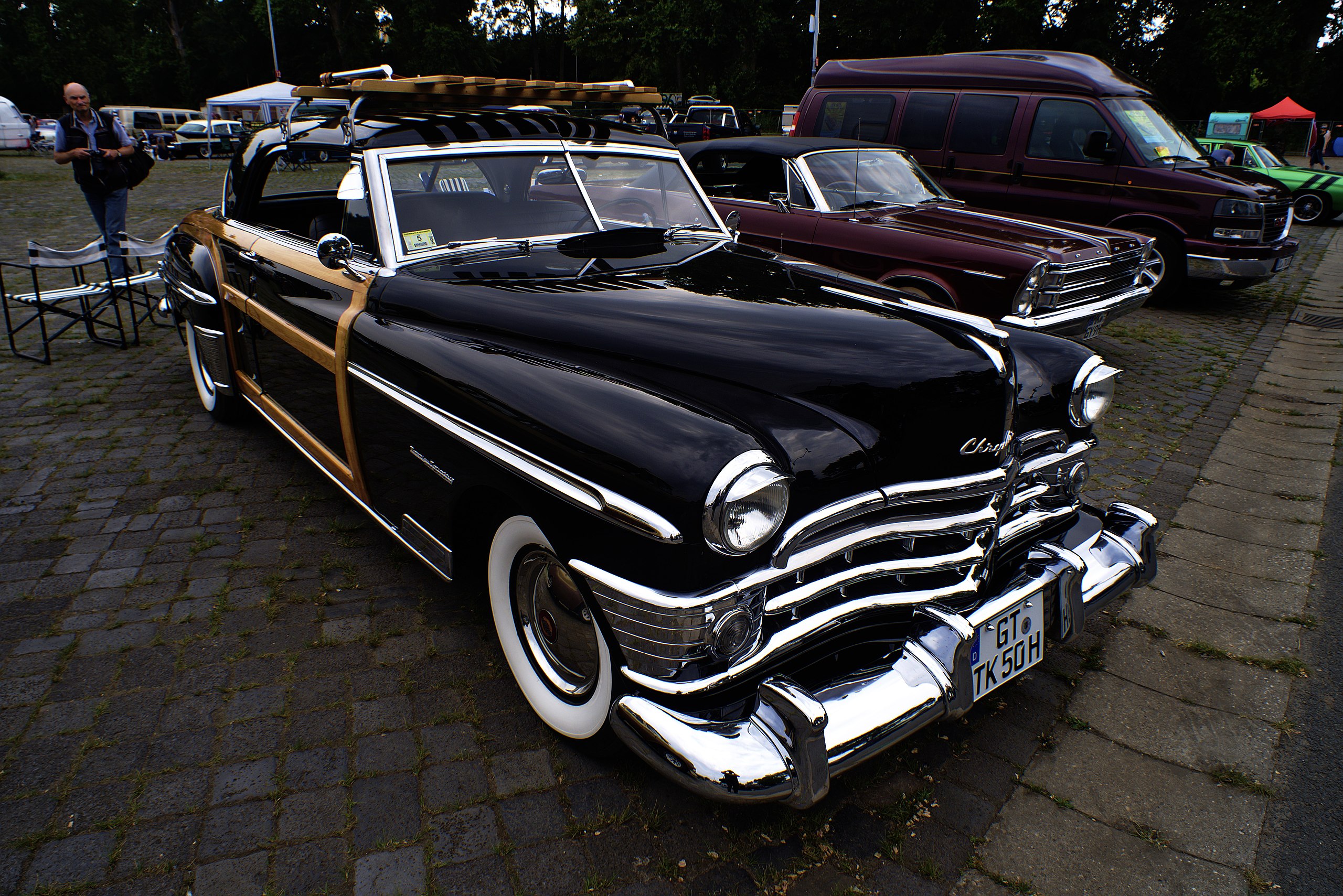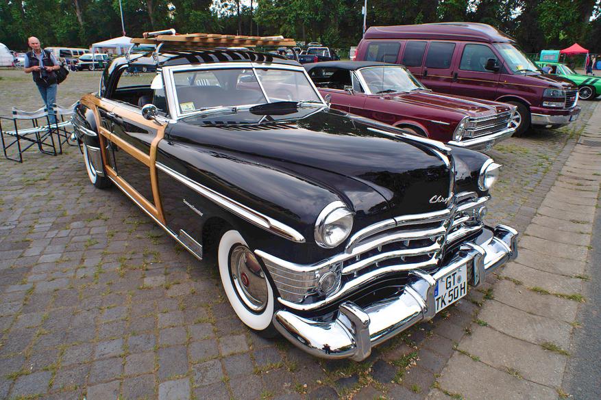 Последний и самый стильный представитель легендарной линейки «вуди» от Chrysler. В этой модели роскошная деревянная отделка дверей и задних панелей эффектно сочеталась с вытянутым капотом и блестящей хромированной решёткой радиатора, создавая гармоничный образ послевоенного американского автомобиля.