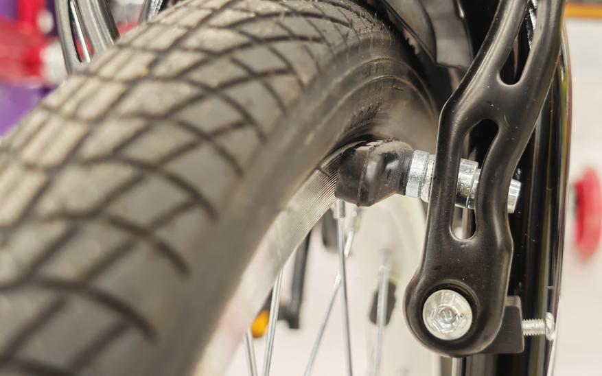 Клещевые тормоза работают за счет прижимания колодок к ободу колеса. Их фишка — доступность и простота обслуживания. Родители легко могут настроить и отрегулировать такие тормоза самостоятельно. Однако эффективность клещевых тормозов значительно снижается во влажных условиях. При попадании воды или грязи на обод тормозное усилие уменьшается.