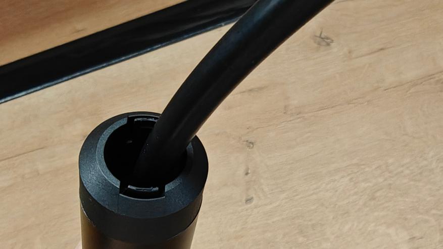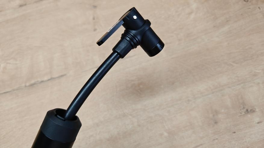 Головка насоса закрепляется на основном стволе насоса, при этом резиновый шланг прячется внутри металлической конструкции насоса и будет надежно защищен от любых повреждений, а так же не будет перегибаться.