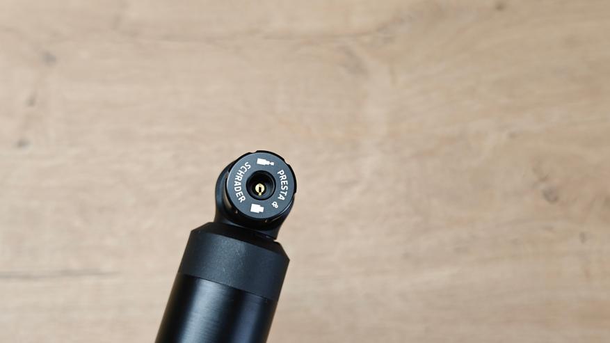 Насос подходит для ниппелей Schrader и Presta, что и указано на защелке