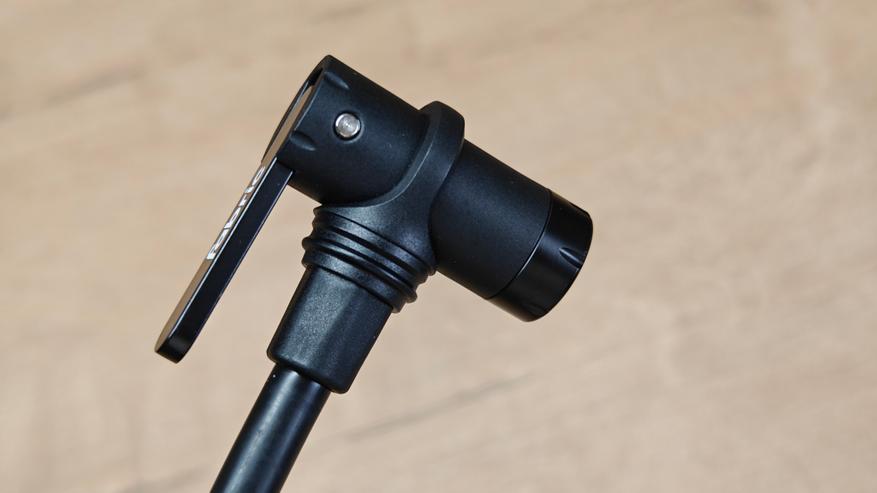 Первое что хочется отметить при эксплуатации насоса, это то, что все части имеют фиксацию и не болтаются. Рычаг зажима головки достаточно тугой, но не тяжелый, с ним легко справится любой взрослый человек или даже ребенок. Головка насоса автоматически фиксируется на ниппеле при опускании рычага. Фиксация надежная, не допускает спуска воздуха или подтравливания. Просто надел и повернул рычаг. Очень просто и отточено. Резиновый шланг позволяет дотянуться до ниппеля. Колесо накачал буквально за минуту, нагрева нет.