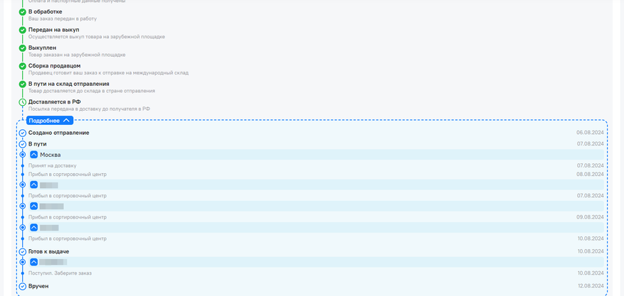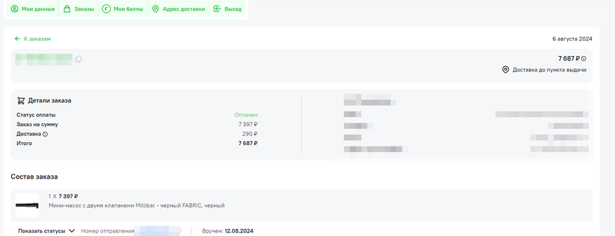 Заказ был оформлен 6 августа, а уже 10-го он был доступен на ближайшем ПВЗ компании. 290р взяли за доставку.