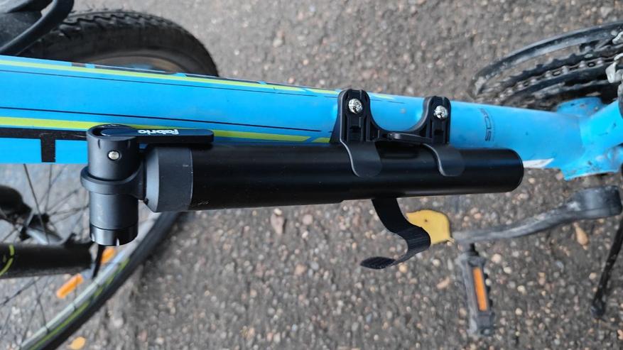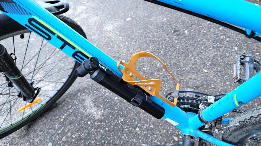 А крепление насоса крепко удерживает его на раме велосипеда. Более того, крепление продумано, слегка отнесено вбок и не занимает место под держатель бутылки.