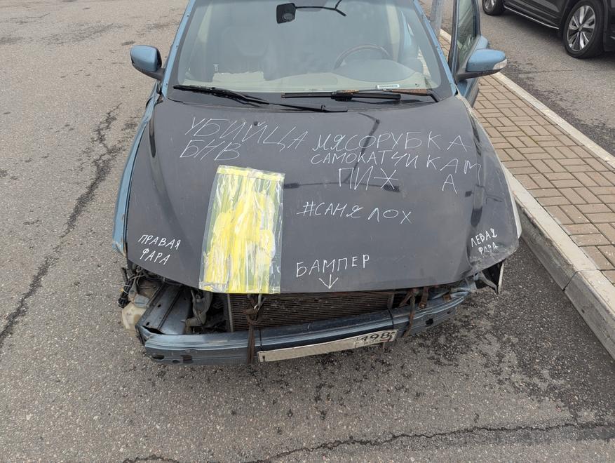 Один из таких — Volvo S60 2006 года. В машине с трудом узнаётся первое поколение компактного представительского седана, владелец рассказал о «нескольких» ДТП за последние годы, многие за всю жизнь видят меньше. Автомобиль видел лучшие времена, но, несмотря на внешнее состояние, ездил всё ещё бодро. Преданность делу, доведённая до абсурда, и юмор владельца достойны уважения. Серьёзно, без сарказма.