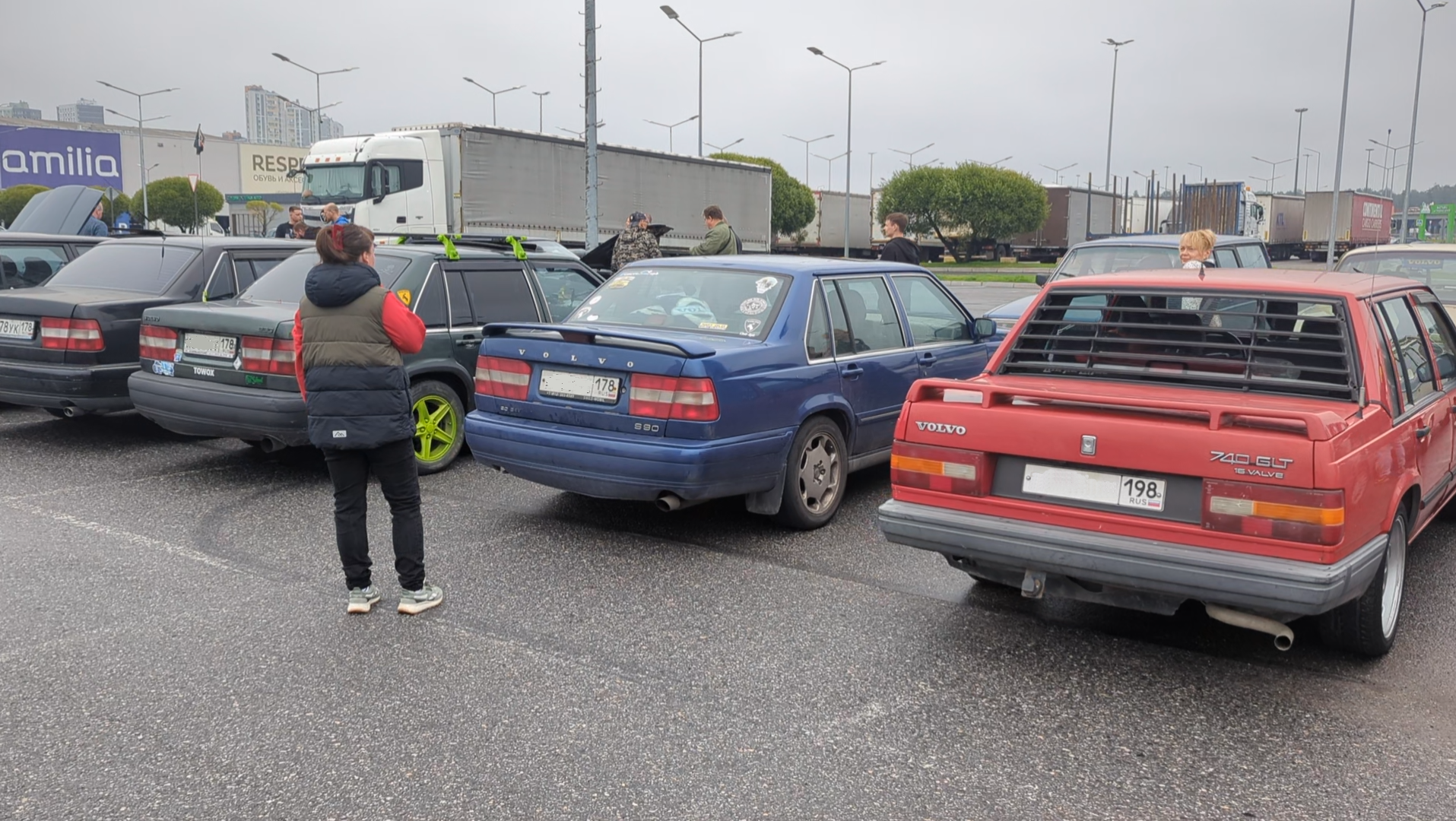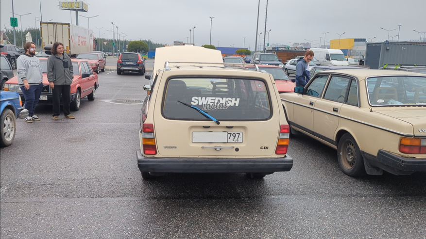 Автовладельцы собираются в 13:00 на парковке Мега Дыбенко, съезд организует Николай, любитель старых моделей Volvo, поэтому на мероприятии представлены в основном серии 240, 740, 940 и 960. Несмотря на заранее известное время, сперва на парковке было в районе 10 машин, но со временем подтягивалось всё больше и больше владельцев. Зрелищный момент был, когда 7 машин подъехали одновременно, один за другим разноцветные автомобили занимали парковочные места, вставая капот к капоту. Большинство моделей было в «боевом» состоянии, где-то разбиты фонари, где-то подгнил кузов, у кого-то бампера держатся на стяжках и так далее, но были и идеальные экземпляры, будто пару лет назад сошедшие с конвейера.