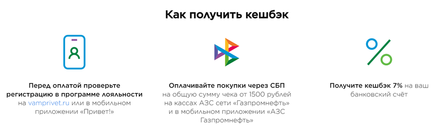 Сеть АЗС «Газпромнефть» в совместных акциях с НСПК не новичок — неоднократно проводила их ещё с 2021 года. Но предыдущие относились к оплате картами «Мир», которые уже сами-то по себе продвигать не требуется. Теперь основная тема — СБП, так что та же программа лояльности НСПК больше не называется «Привет, Мир!», да и адрес её сайта сменился. Но для пользователей всё произошло прозрачно — просто теперь есть акции и по картам, и при оплате через СБП (и дополнительная регистрация не требуется). Эта конкретная — второго типа.