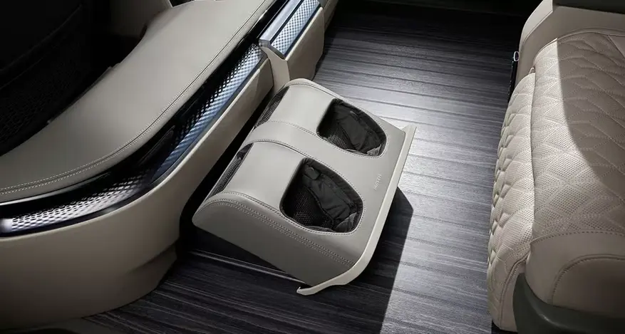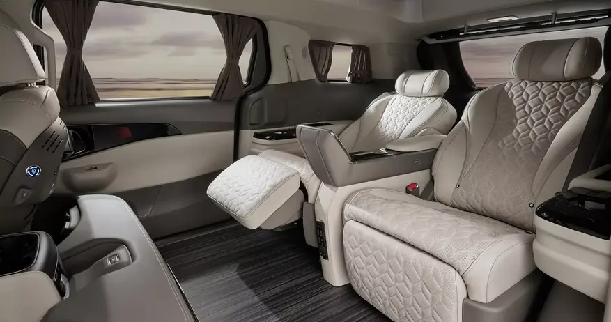 Покупателям доступны варианты с четырьмя, семью или девятью местами. Флагманская четырехместная версия Signature оснащена капитанскими креслами с функцией массажа, выдвижными подставками для ног, массажером для ног и отделением для обуви. Для задних пассажиров предусмотрен 21,5-дюймовый потолочный экран, 7-дюймовый сенсорный контроллер, беспроводные зарядные панели, складные столики, холодильник и вешалка для одежды.