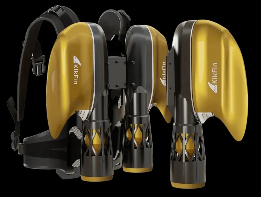 Израильская компания Kikfin создала два инновационных подводных устройства — Fly Pack и Shark Jet Pack, имитирующие движение морских обитателей. Обе модели представляют собой носимые реактивные системы с электрическими водометными двигателями, позволяющие человеку передвигаться под водой без мышечных усилий.