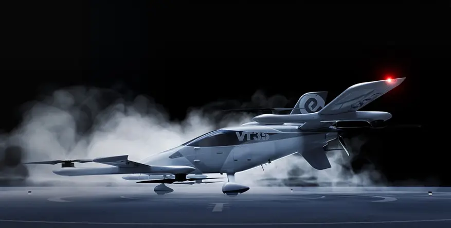 Конструкция VT35 включает девять винтов — восемь отвечают за вертикальный подъем, один обеспечивает горизонтальное движение. Габариты воздушного судна составляют 8,26 метра в длину при размахе крыла 8,16 метра.