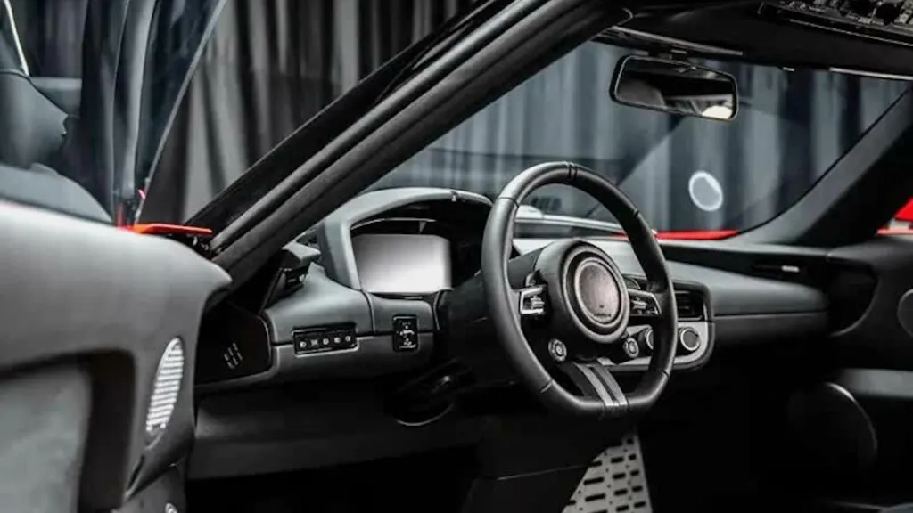 Дизайн кузова выполнен в стиле классического Lancia Stratos. Интерьер отличается минималистичным подходом: вместо сенсорных панелей установлены физические переключатели климат-контроля и традиционный рычаг ручного тормоза.