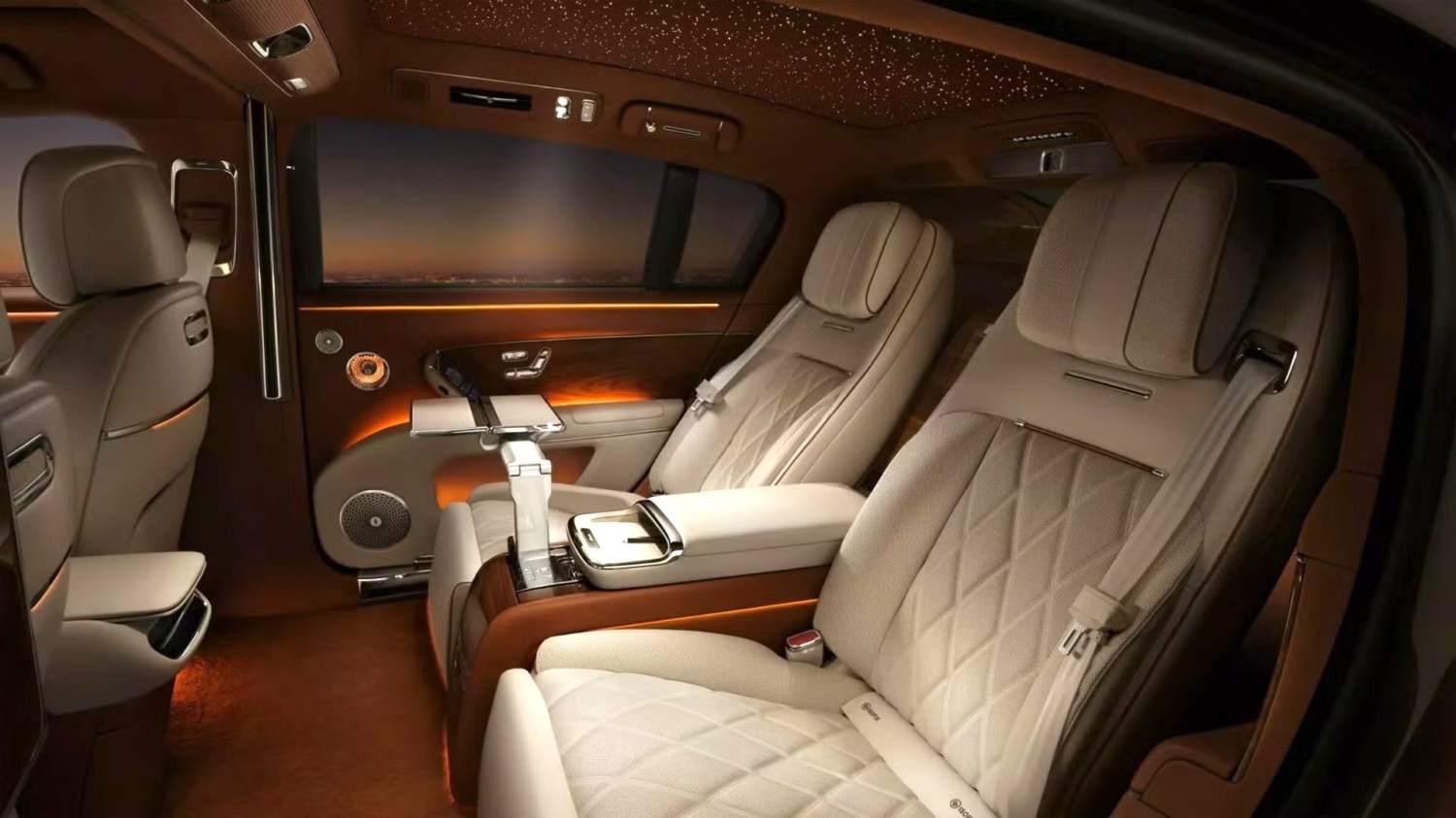 Салон ориентирован на комфорт задних пассажиров. Он включает в себя регулируемые сиденья премиум-класса с интеллектуальной подсветкой, управляемые жестами, и панорамную крышу с опциями создания эффектов звездного неба. Также реализованы системы управления дверьми и защитным остеклением с помощью жестов.